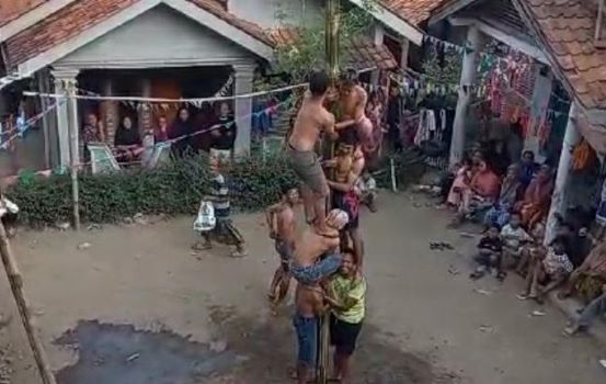 Video kejadian yang berdurasi 34 detik diunggah di akun Facebook Apip Ay, Sabtu (17/8/2024). Video itu memperlihatkan sekelompok warga tengah mengikuti lomba panjat pinang. Korban diketahui mengenakan semacam bandana.