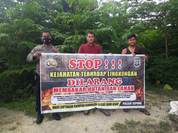 Memasuki musim kemarau awal Maret 2021 ini, para Bhabinkamtibmas yang bertugas di wilayah hukum Polsek Tapung juga memasang spanduk berisi larangan membakar lahan dan membagikan brosur maklumat Kapolda Riau, tentang larangan melakukan pembakaran lahan serta ancaman pidananya.