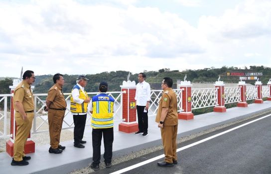 BNEWS - Presiden Jokowi meresmikan Bendungan Leuwikeris di Tasikmalaya, Jawa Barat (Jabar). Bendungan tersebut merupakan bendungan termahal di Indonesia, menelan anggaran hingga Rp 3,5 triliun.