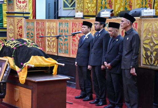 BNEWS - DPRD Kota Pekanbaru menggelar upacara pelepasan jenazah Heri Setiawan SH, Anggota DPRD Kota Pekanbaru Fraksi Demokrat masa jabatan 2019-2024, di Ruang Rapat Paripurna Gedung Balai Payung Sekaki, Rabu (3/4/2024), dipimpin Ketua DPRD Kota Pekanbaru, Muhammad Sabarudi ST didampingi Wakil Ketua DPRD Pekanbaru Ginda Burnama ST MT, Tengku Azwendi Fajri SE MM dan Ir Nofrizal MM.