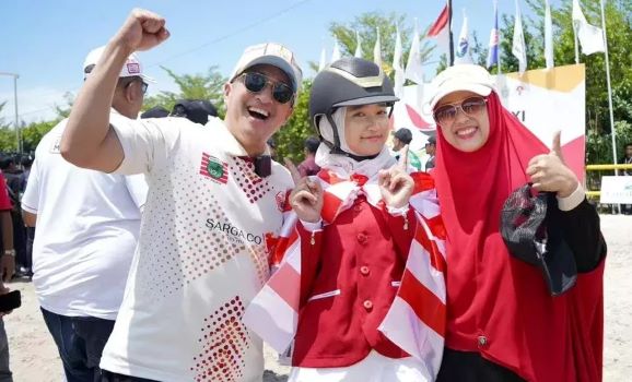 BNEWS - Aisha Maydina Hakim, putri presenter kondang Irfan Hakim, raih medali emas pada helat Pekan Olahraga Nasional (PON) XXI 2024 yang berlangsung di Aceh-Sumatera Utara (Sumut) dalam cabang berkuda, nomor lompat rintangan (jumping) beregu U-21.