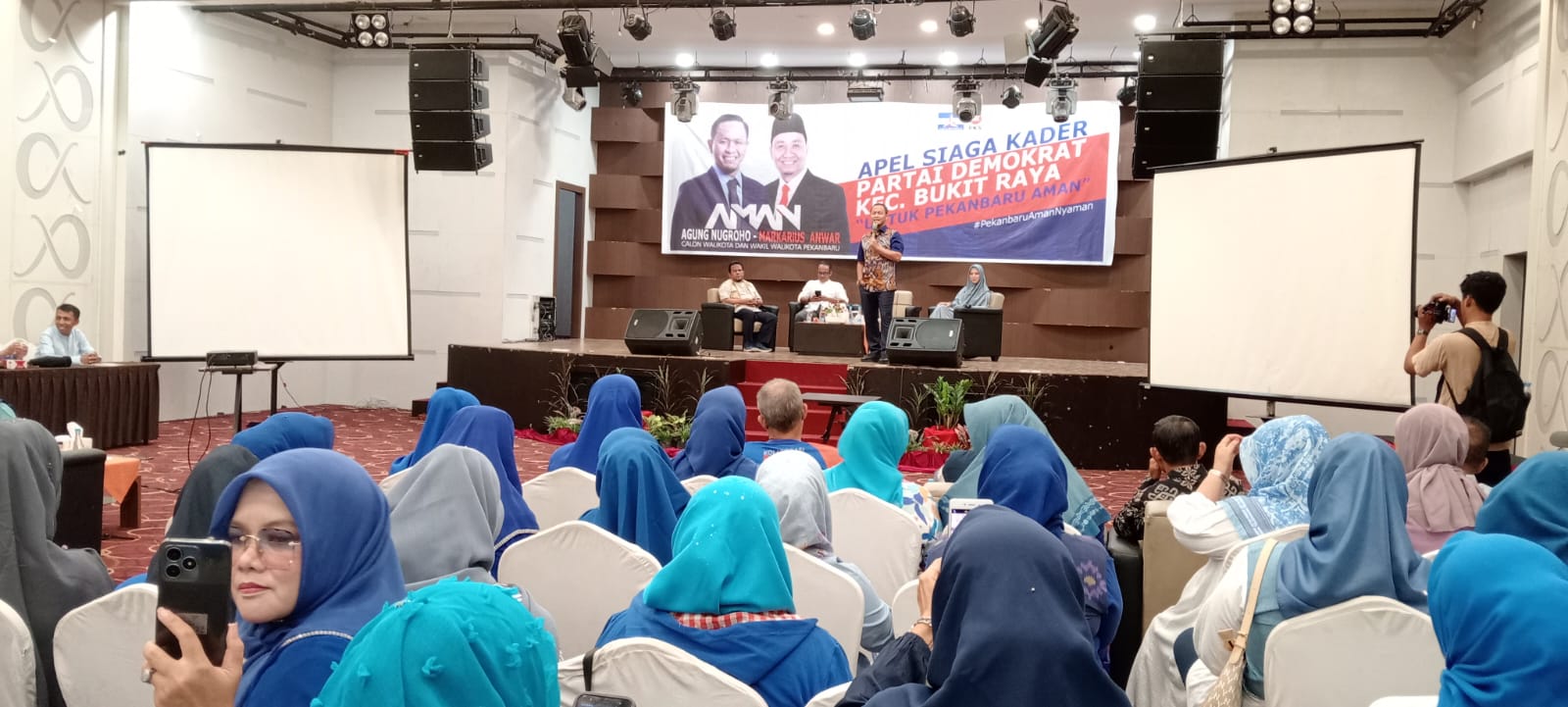 Tekat untuk memenangkan pasangan AMAn dalam kontestasi Pilkada pada November 2024 mendatang disampaikan pada agenda Apel Siaga Kader Partai Demokrat Kecamatan Bukit Raya "Untuk Pekanbaru AMAN"