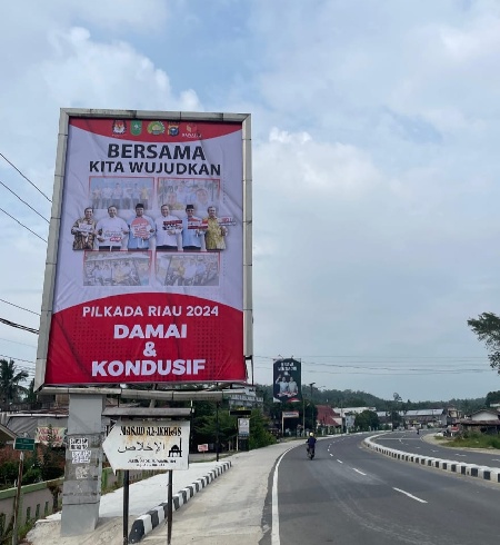 Kapolres Kampar AKBP Ronald Sumaja mengatakan, pemasangan spanduk ini bertujuan menjaga kedamaian selama proses Pilkada 2024.