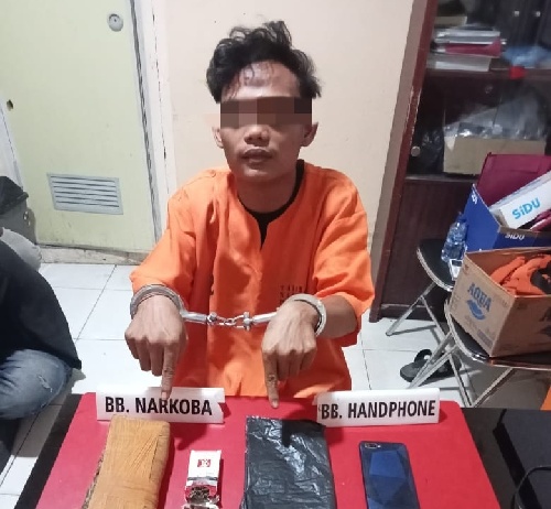 BNEWS - Seorang pemuda inisial YU (21), warga Desa Geringging, Kecamatan Kampar Kiri, Kabupaten Kampar, ditangkap Satnarkoba Polres Kampar di depan SPBU Teratak Buluh, Kecamatan Siak Hulu, Senin (7/10/2024) malam.