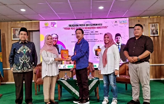 BNEWS - Ketua Mahkamah Konstitusi (MK) Dr Suhartoyo SH MH jadi narasumber talk show yang digelar Forum Jurnalis Perempuan Indonesia (FJPI) Riau bekerjasama dengan Fakultas Ilmu Komunikasi Universitas Muhammadiyah Riau (Fikom-UMRI), Jumat (11/10/24).