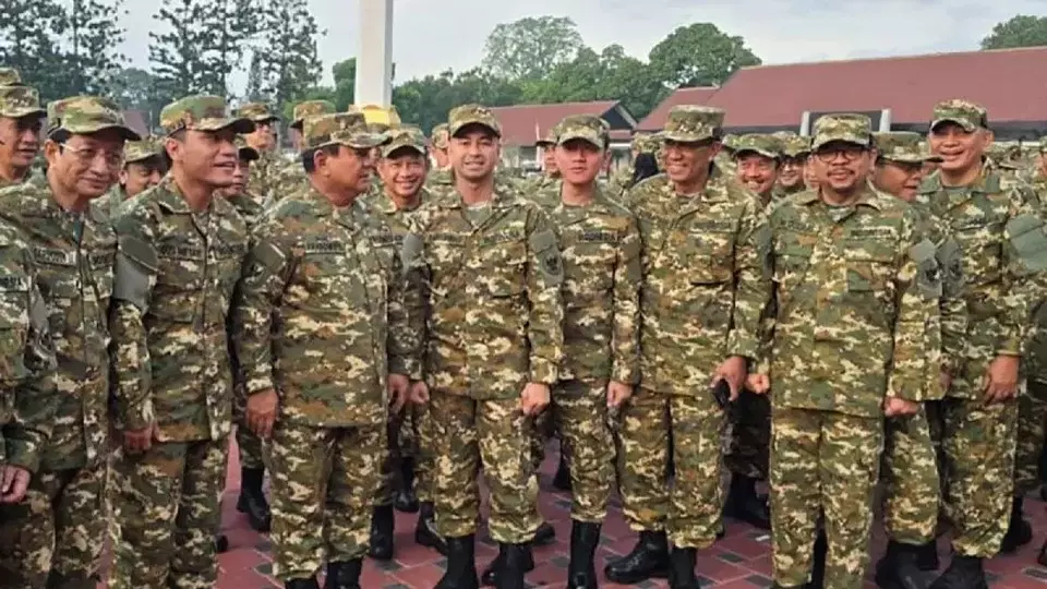 BNEWS - Selebritas dan presenter kondang Raffi Ahmad yang mengikuti pelatihan bersama para menteri kabinet Merah Putih di Lembah Tidaar Akmil Magelang terlihat elegan dengan seragam militer yang dikenakannya. Raffi Ahmad menjabat staf khusus Presiden Bidang Pembinaan Generasi Muda dan Pekerja Seni.