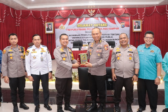 Kedatangan tim Puslitbang Polri dipimpin Ketua Tim Supervisi KBP F.X Surya Kumara, Ketua Tim Penelitian KBP Rido Rolly Maruli Parsaoran Purba dan disambut Kapolres Kampar AKBP Ronald Sumaja.