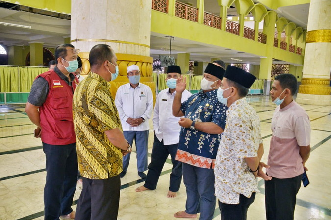 PEKANBARU - Sekretaris Daerah Kabupaten Kampar Drs. Yusri, tinjau Astaka Utama MTQ ke 51 Tingkat Kabupaten Kampar di Islamic Center Bangkinang Kota, Jum'at (12/03/2021).
