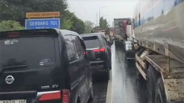 BNEWS - Antrean panjang kendaraan terjadi di Pelabuhan penyebrangan Merak, Banten, akibat cuaca buruk dan kapal susah sandar. Antrean terlihat hingga ke Exit Tol Merak. Hal ini dikatakan Kasat Lantas Polres Cilegon AKP Mulya Sugiharto.