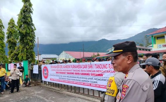 BNEWS - Polres Agam, Sumatera Barat (Sumbar) turunkan sebanyak 60 personel untuk mengamankan aksi demo yang dilakukan masyarakat yang meminta pencopotan Kamroni Purnamera sebagai Kepala Sekolah Menengah Kejuruan Negeri (SMKN) 1 Tanjung Raya, Senin (9/12/2024).