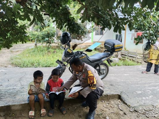 BNEWS - Bripka Wawan Asroy Harahap, Bhabinkamtibmas Desa Merangin, Kecamatan Kuok, Kabupaten Kampar, bukan hanya sosok polisi yang tangguh, tapi juga memiliki kepedulian tinggi terhadap pendidikan dan masa depan anak-anak di wilayah binaannya.