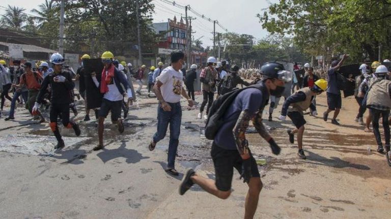 Aparat keamanan dilaporkan menembak mati sedikitnya 20 pengunjuk rasa pro-demokrasi pada Senin (15/3/2021). Tetapi aksi demonstrasi terus berlangsung di Mandalay dan pusat Kota Myingyan serta Aunglan.