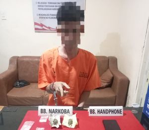 BNEWS - Tim Ojoloyo Sat Resnarkoba Polres Kampar pada Jumat (17/01/2025) berhasil mengamankan seorang tersangka, DT (38), di Dusun IV Desa Kasikan, Kecamatan Tapung Hulu, Kabupaten Kampar.