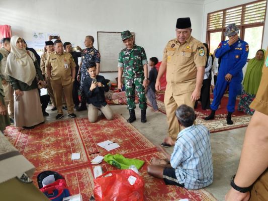 BNEWS - Pemerintah Provinsi (Pemrov) Riau diwakili Asisten I Setda Provinsi Riau, H. Zulkifli Syukur, didampingi Kasdim 0322/Siak, Mayor Inf Indra Mangaratua Samosir, melakukan kunjungan ke lokasi pengungsi banjir di Kampung Benteng Hilir, Kecamatan Mempura, Kabupaten Siak.