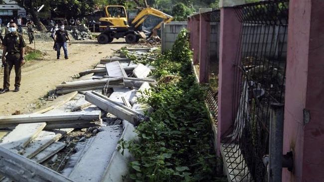Sementara tim yang merobohkan terdiri dari polisi, TNI, Satuan Polisi Pamong Praja (Satpol PP). Kemudian Dinas Perhubungan (Dishub) memantau langsung pembongkaran tembok beton tersebut.