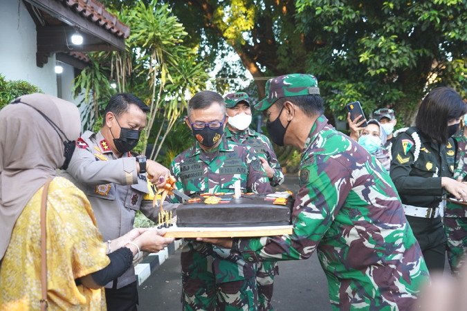 "Hari ini kami dari Korem 064 Maulana Yusuf melakukan 'Serangan Fajar' ke rumah dinas Kapolda Banten, untuk memberikan kue ulang tahun kepada Bapak Kapolda Banten," ujar Gumuruh, Rabu (17/03/2021).