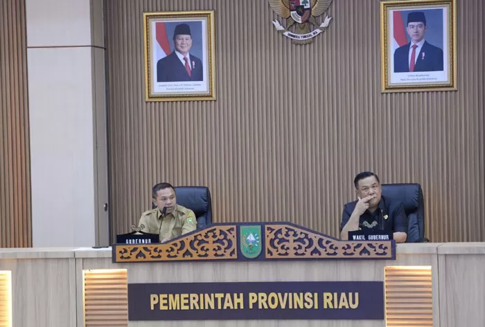 BNEWS - Gubernur Riau (Gubri) Abdul Wahid memimpin rapat perdana dengan seluruh Pimpinan Tinggi Pratama (PTP) di lingkungan Pemerintah Provinsi (Pemprov) Riau, Senin (3/3/2024) di Ruang Rapat Melati Kantor Gubernur Riau, membahas arah kebijakan pemerintahan ke depan.
