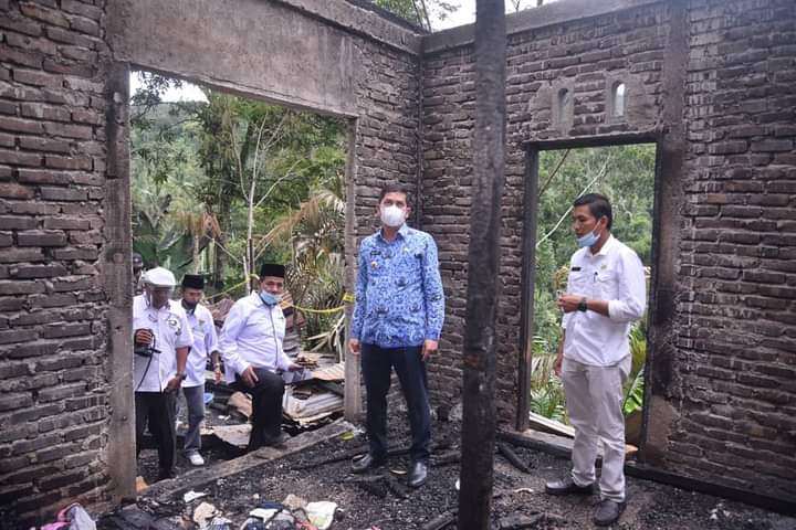 SAWAHLUNTO - Walikota (Wako) Sawahlunto, Deri Asta kunjungi rumah Uci Amelia, warga Dusun Batu Tajam, Desa Kubang Tangah, Kecamatan Lembah Segar, Kota Sawahlunto yang ditimpa musibah kebakaran, pada Senin malam 15 Maret 2021 lalu.
