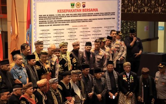 BNEWS - Tokoh adat bersama Kepolisian Daerah (Polda) Provinsi Sumatera Barat (Sumbar) bersepakat mengedepankan keadilan restoratif dalam menyelesaikan sejumlah penyakit masyarakat (pekat) di Ranah Minang. Kedua belah pihak juga bersepakat memerangi segala jenis penyakit masyarakat yang berpotensi merusak adat, agama serta generasi muda.