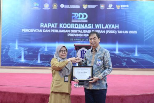 PEKANBARU - Pemerintah Provinsi (Pemprov) Riau dianugerahi Sertifikat Championships sebagai Provinsi Terbaik di Wilayah Sumatera, dalam upaya mendorong digitalisasi dan transformasi transaksi pemerintahan daerah.