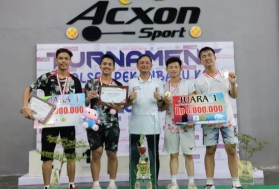 Berkabarnews com, Pekanbaru - Ganda putra Rian A H dan Tomy, perwakilan PB RBC Pekanbaru sukses menyudahi kemenengan dengan skor 21-14 dan 21-12 di partai final Turnamen Badminton Kapolsek Pekanbaru Kota, Simpatig Cup2 tahun 2025 di Acxon Sport, Jumat (10/5/2025).