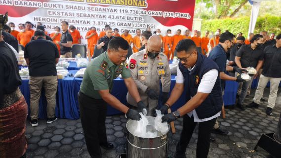 Polda Riau Musnahkan BB 119 Kg Sabu, Ribuan Butir Ekstasi, Heroin, dan Ganja Rabu, 28/05/2025 | 15:33
