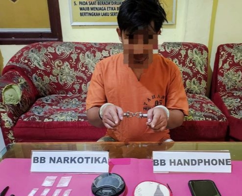 Barang bukti yang diamankan meliputi enam plastik klip bening berisi narkotika jenis sabu dengan berat bruto 2,42 gram, dua buah timbangan elektronik, dua buah sendok sabu.