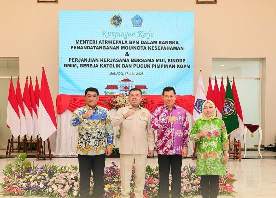 Dihadiri Menteri Nusron, Kanwil BPN Provinsi Sulut Teken MoU dengan Lembaga Keagamaan Kamis, 17/07/2025 | 20:32