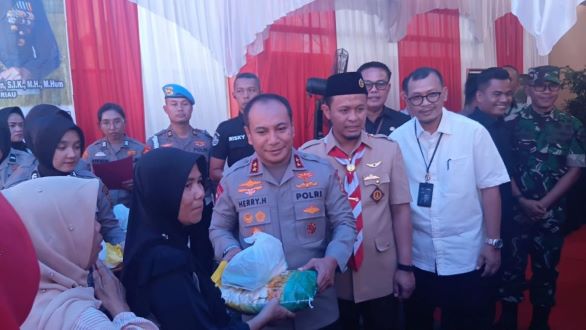 Berkabarnews.com, Pekanbaru - Kapolda Riau Irjen Pol Herry Heryawan bersama Wali Kota Pekanbaru Agung Nugroho datangi Polsek Sukajadi, Pekanbaru, Kamis (14/8/2025), menghadiri acara Gerakan Pangan Murah (GPM) yang diselenggarakan oleh Bulog Riau-Kepri, Polda Riau, dan Pemkot Pekanbaru.