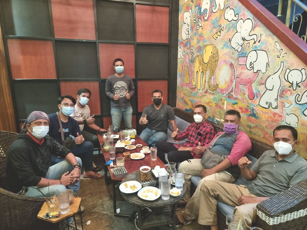 PEKANBARU - Kombes Pol Edy Sumardi, Kepala Bidang (Kabid) Humas Polda Banten ngopi bareng sambil bersilahturahmi dengan beberapa wartawan di Pekanbaru, Riau, Kamis (25/3/2021) malam.