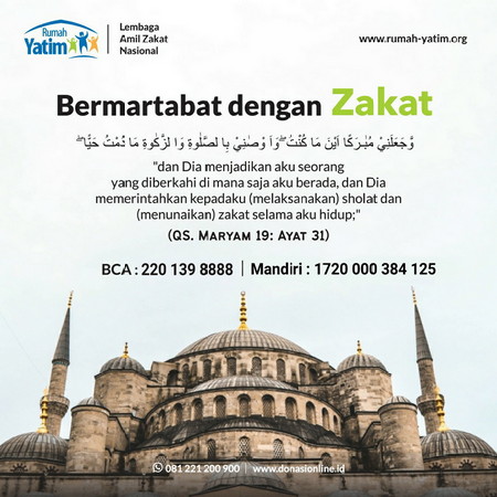 Allah SWT berfirman: "dan Dia menjadikan aku seorang yang diberkahi di mana saja aku berada, dan Dia memerintahkan kepadaku (melaksanakan) sholat dan (menunaikan) zakat selama aku hidup". (QS. Maryam 19: Ayat 31)