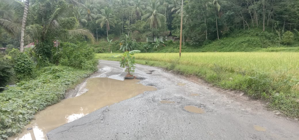 ‘’Sekelompok masyarakat melakukan protes dan aksi melakukan penanaman batang pisang di tengah jalan yang rusak parah. Ini adalah bentuk kekecewaan masyarakat,’’ ujar Jasmadi.