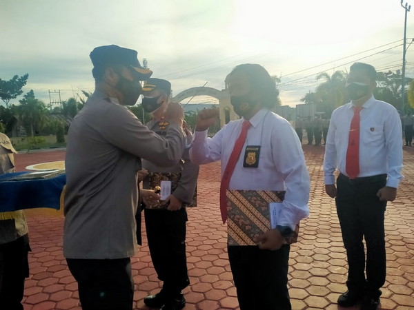 Seusai apel, Kapolres Bengkalis memberikan penghargaan kepada 23 personil karena telah berhasil mengungkap jaringan narkoba diluar jam dinas.