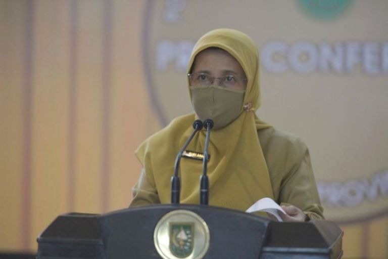 PEKANBARU - Saat ini ada 10 Rumah sakit di Riau yang saat masih merawat pasien positif Covid-19. Hal ini dikatakan Kepala Dinas Kesehatan Provinsi Riau Mimi Yuliani Nazir, saat jumpa pers update Covid-19 di Posko Gugus tugas Riau, Selasa (30/6/2020).