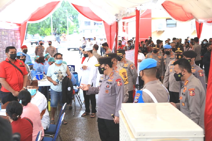 JAKARTA - Kapolri Jenderal Listyo Sigit Prabowo meninjau vaksinasi di Polda NTT sekaligus menyaksikan langsung donor plasma konvalesen anggota Polri penyitas Covid-19, dalam rangkaian kunjungan kerjanya ke Nusa Tenggara Timur (NTT).