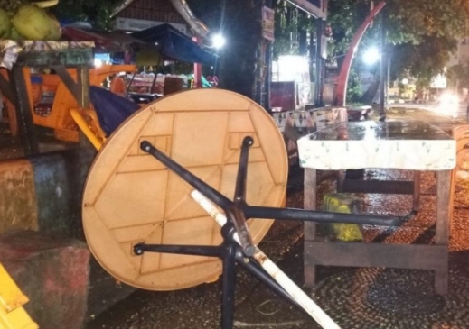 PADANG - Kota Padang, Sumatera Barat (Sumbar) kembali dilanda angin kencang yang disertai hujan lebat, Sabtu (4/4/2021) malam. Akibatnya sejumlah meja, bangku, serta payung pedagang bertumbangan,