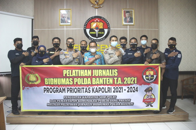 "Pelatihan Jurnalisme Kepolisian ini dilaksanakan dengan mengundang nara sumber dari Pusat Studi Komunikasi Kepolisian (Pukompol), Suryadi diikuti 20 peserta yang terdiri dari personel Bid Humas Polda Banten dan media mitra, dengan tema "Pelatihan Jurnalisme Kepolisian".