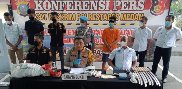 Kapolrestabes Medan saat jumpa pers lokasi hiburan yang dijadikan tempat judi di Deli serdang