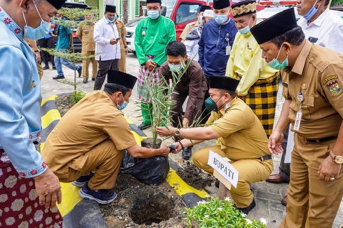 BNEWS - Bupati Kampar, Catur Sugeng Susanto, membuka pencanangan gerakan Jumat bersih yang dilaksanakan di Mesjid Raya Al-Mizan, Desa Lipat Kain, Kecamatan Kampar Kiri, sekaligus melakukan halal bi halal dalam rangka menyambut datangnya bulan suci ramadhan, Senin (12/4/2021).