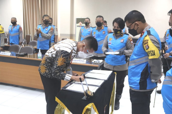 BNEWS - Kepolisian Daerah (Polda) Banten gelar acara penandatanganan pakta integritas calon anggota polri dan orang tua, dalam penerimaan taruna Akademi Polisi (Akpol) tahun 2021 Panda Banten, Jum'at (16/4/2021).