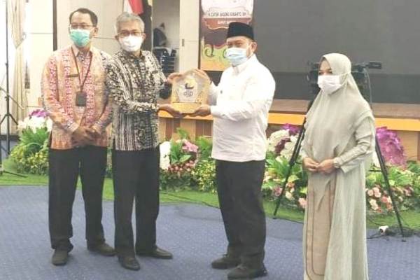 Bupati Kampar Catur Sugeng Susanto didampingi Kepala Dispenda Kholida. mengikuti pelaksanaan acara ini dari Aula Rumah Dinasnya.