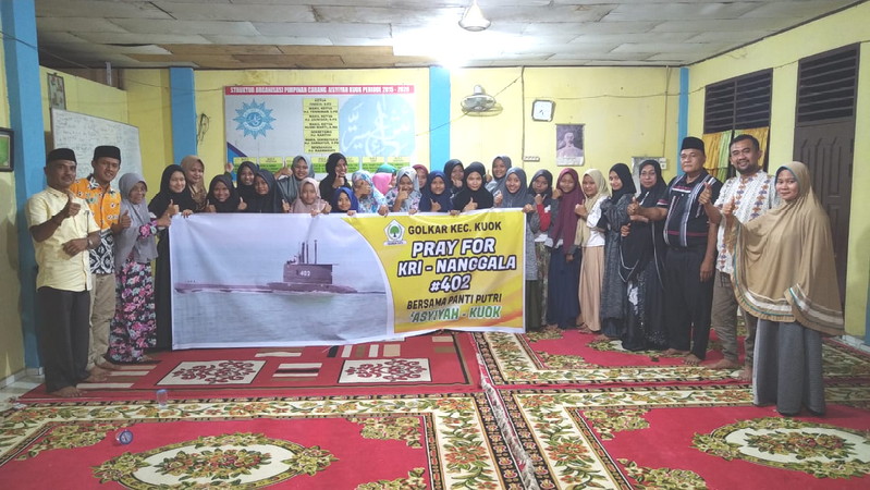 Sedangkan Ketua Badan Penanggulangan Bencana DPD II Partai Golkar Kampar, Nur Adlin, juga mengajak seluruh penghuni panti asuhan Aisiyah Putri Kuok untuk terus mengirimkan doa bagi seluruh awak kapal selam Nanggala 402 dalam ibadah yang mereka laksanakan.