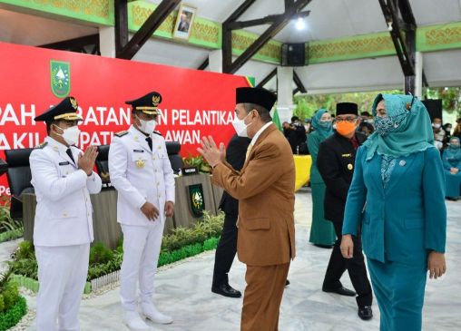 Pelantikan dilaksanakan dengan protokol kesehatan, tamu yang hadir dalam pelantikan Bupati dan Wakil Bupati Pelalawan terpilih ini terbatas karena suasana pandemi Covid19, hanya dihadiri oleh keluarga inti, Wakil Gubernur Riau (Wagubri) Edy Natar Nasution, Forkopimda Riau, Pj Sekdaprov Riau Masrul Kasmy.***/zi/mcr