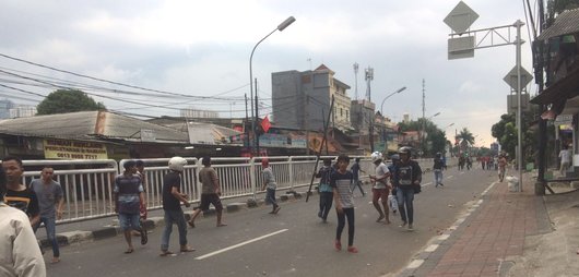 BNEWS - Tawuran antara dua kelompok terjadi di Jalan Kota Bambu Utara 1, Palmerah, Jakarta Barat, Senin (26/4/2021) malam. Tawuran ini juga menggunakan kembang api dan petasan, menyebabkan satu toko perlengkapan bayi terbakar di lokasi.