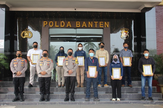 Kapolda Banten Irjen Pol Dr. Rudy Heriyanto Adi Nugroho memberikan langsung Sertifikat Piagam Penghargaan tersebut kepada perwakilan dari 182 media massa dari berbagai daerah yang dapat penghargaan tersebut.