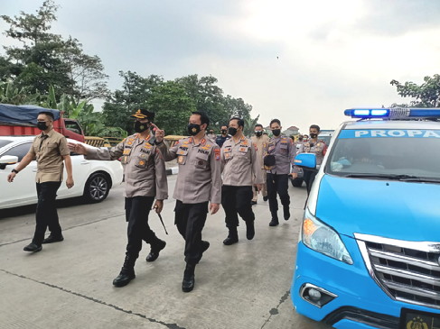BNEWS - Kapolda Banten Irjen Pol Dr Rudy Heriyanto Adi Nugroho meninjau secara langsung pos pengamanan mudik lebaran 2021 di Gerbang Tol Cikupa, Pos Pam Jayanti dan Pos Pam Asam Cikande, yang merupakan perbatasan dari wilayah hukum Polda Metro Jaya.