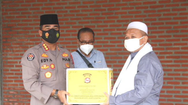 BNEWS - Menandai Jumat terakhir (7/5/21) di bulan suci Ramadhan 1422 H, Kapolda Banten memberikan bingkisan berupa seperangkat alat shalat ke Pondok Pesantren Al-Khozin, Jiput, Pandeglang.