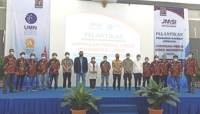 Pelantikan yang digelar di function hall Universitas Multimedia Nusantara (UMN), Gading Serpong, Kelapa Dua, Kabupaten Tangerang ini dihadiri Ketua Komnas HAM, Ahmad Taufan Damanik, Ketua JMSI Pusat, Teguh Santosa, General Manager Marketing UMN, Arief Setiyadi Hermawa serta Kasubdit Penmas Bidhumas Polda Banten, AKBP Meryadi dan undangan lainnya.