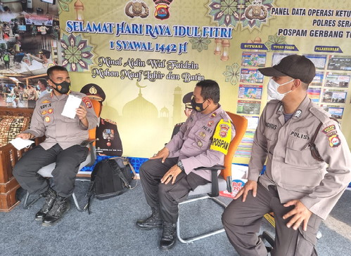"Selaku Pamatwil Polres Serang Saya meninjau secara langsung Pos PAM dan pos penyekatan yang berada di Gerbang Tol Cikande. Kedatangan kami ke sini untuk memastikan proses pengamanan berjalan dengan aman dan lancar," kata Edy Sumardi.