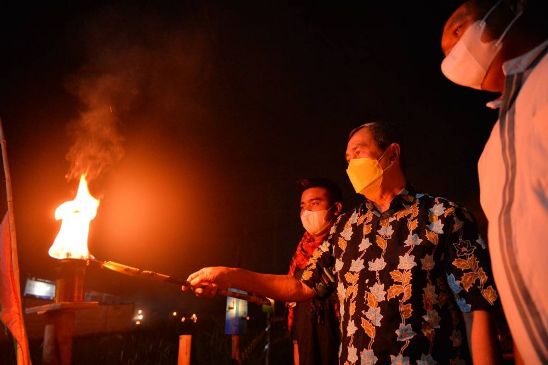 BNEWS - Gubernur Riau (Gubri) Syamsuar mengapresiasi hasil karya dan kerajinan lampu colok yang dibuat oleh para pemuda di Kelurahan Limbungan, Kecamatan Rumbai, Kota Pekanbaru, Riau dan dipamerkan dalam acara Festival Lampu Colok, Sabtu (8/5/2021) malam.